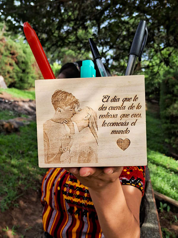 El grabado no se borra ni se deteriora con el tiempo, ya que es quemado directamente sobre la superficie de la madera.